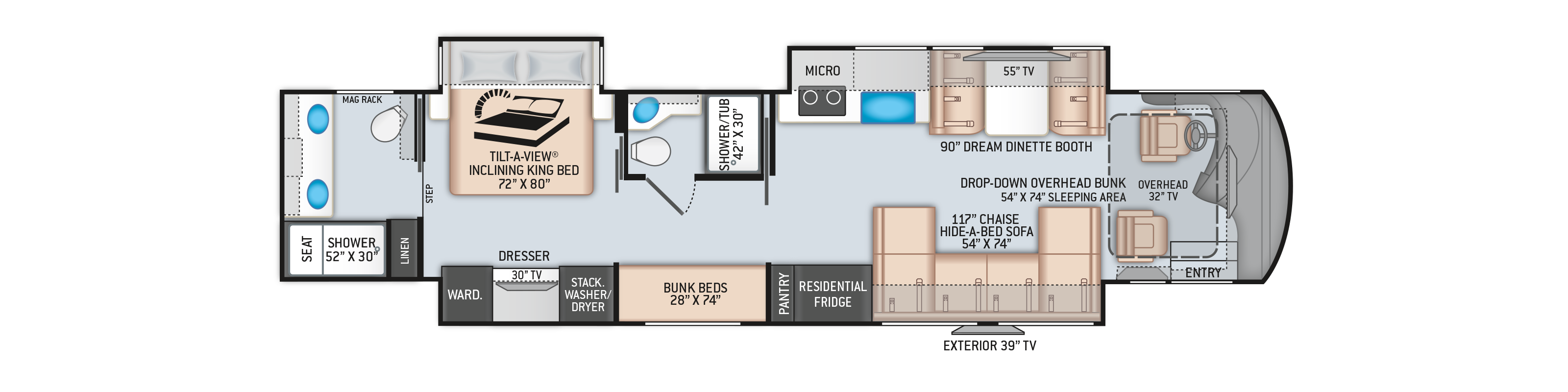 They excel at providing a lot of space for their size. For couples or small groups for a luxurious apartment on wheels we offer our diesel pusher. Floors feature carpet, beauflor residential flooring, structure wood floor base, block foam laminated to weather resistant underbelly and steel rugged steel frame. Generally speaking, diesel pushers are the most expensive and luxurious models. Are you a college football season ticket holder who plans on tailgating at every single game.